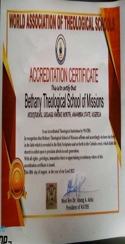FACEBOOK PAGE: BETHANY THEOLOGICAL SCHOOL OF MISSIONS
